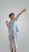 • Round neck, half sleeve kurta with three coconut shell buttons